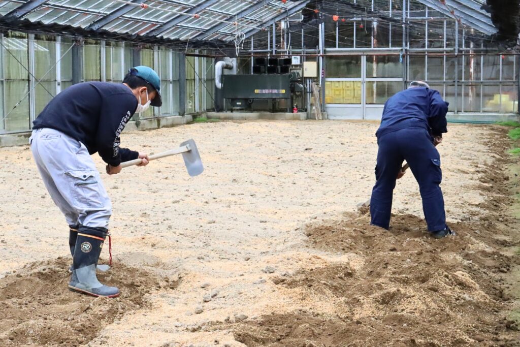 2024年1月1日に発生した能登半島大震災によって、ワークセンターの事業は大きな打撃を受けた。本体である建物には大きな影響はなかったものの、敷地内の地面にはあちこちヒビが入っている。倒れて建物に寄りかかっている電線も何本かあった。何よりも大きかったのが、ハウス内の地下に敷き詰めている水パイプが破損してしまったことだろう。温室ガラスの多くも割れて点在しており、施設開所後に職員がまずやらなければならないのがさまざまな設備の補修だった。